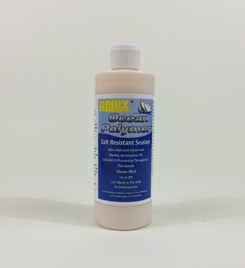 Ardex Ocean Polymer is more than just boat wax, Ocean Polymer is a micro technology formulation that penetrates deep into the pores of gel-coat, clear coat and painted surfaces to provide a crystal clear, high gloss hardened polymer barrier for outstanding UV, salt and weather protection throughout the season. Use on watercraft of any kind, RVs, aircraft, painted surfaces, gel-coat, metal and fiberglass. Works great to protect cars, trucks and commercial vehicles during the winter season when roads are salted. Use around the house on windows, glass shower doors, bathroom & kitchen fixtures for corrosion protection and to prevent water spots. At Naples Yacht Services we've been testing this product for about a year in extreme UV, heat and weather conditions.